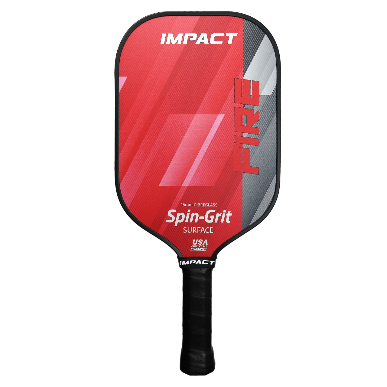 Fibreglass Spin-Grit Surface, ‘IMPACT FIRE’ offers tremendous spin possibilities for a paddle in this price range. Made to the same exacting USAPA standards as the Ice and Eclipse paddles in the competition range.