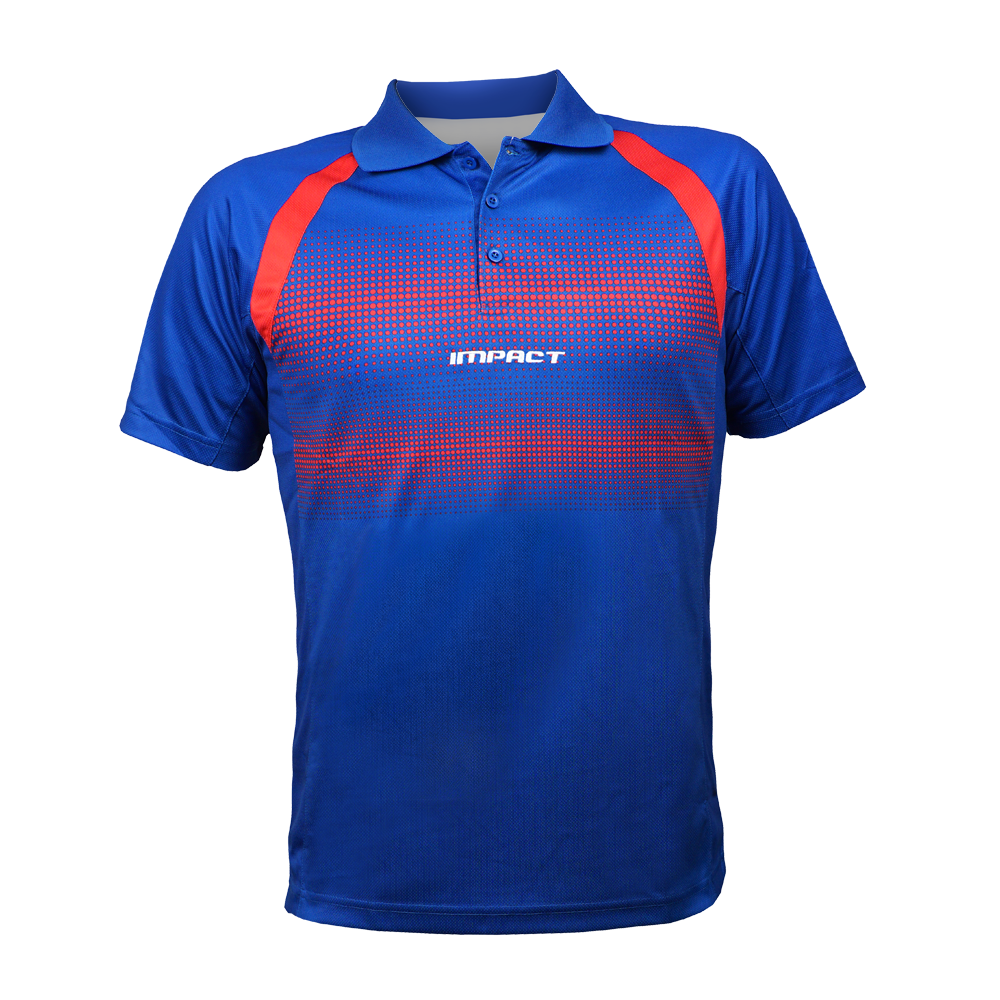 The collared match shirt has a 3 button placket with the latest graduated design in Blue/Red.FF